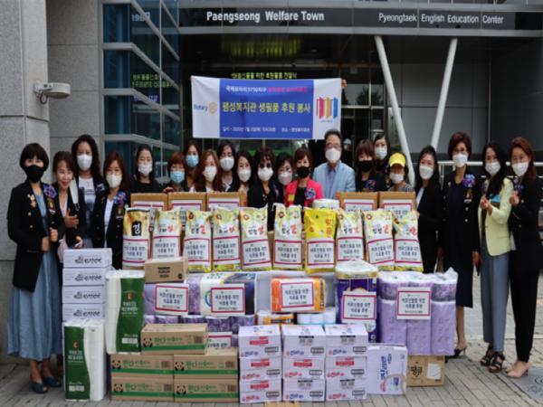 (재)평택복지재단(이사장 김준경)은 7월 02일(목)에 국제로타리 3750지구 평택목련로타리클럽(회장 이현실)과 어르신들을 위한 후원물품 전달식을 가졌다.