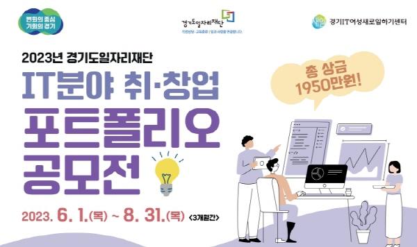 [한국뉴스타임=편집국] 경기도일자리재단이 오는 8월 31일까지 정보기술(IT) 취?창업 활성화와 역량강화 지원을 위해 ‘2023년 정보기술(IT)분야 취?창업 포트폴리오 공모전’을 개최한다.