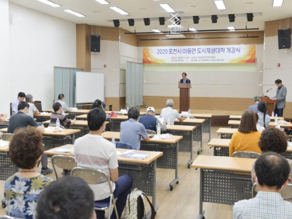 [KNT한국뉴스타임] 포천시는 지난 2일 이동면 주민자치센터 1층 강의실에서 지역주민과 관계자 30여명이 참석한 가운데 이동면 도시재생대학 개강식을 열었다.