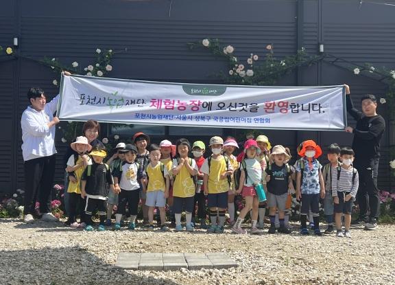 (재)포천시 농업재단은 지난 5월 25일 포천시 신평리 비틀주스팜(귀뚤맘농장)에서 서울시 성북구 국공립어린이집 연합회(웅지어린이집) 원아 43여 명과 함께하는 농촌체험 프로그램을 진행했다.