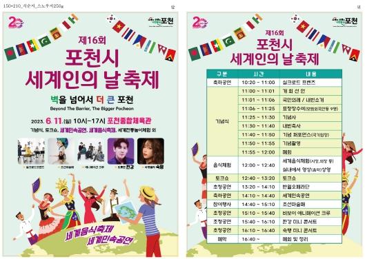 또한, ‘나의 인생과 내가 사는 포천’이란 주제로 외국인 주민들이 참여하는 토크콘서트가 예정되어 있고, 외국인 주민들이 직접 참여해 제작한 포천시민헌장 낭독 영상물도 상영된다.