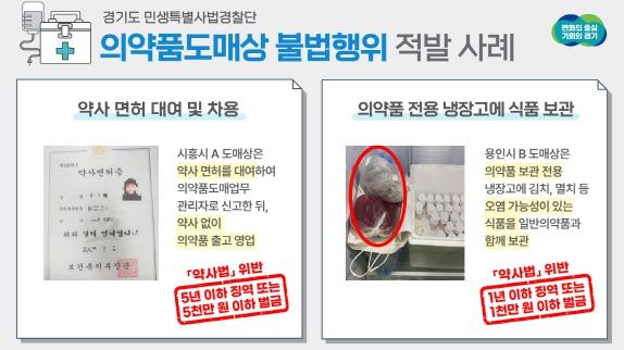 경기도 민생특별사법경찰단은 지난 4월 12일부터 5월 12일까지 도내 의약품 도매상 55개소를 단속한 결과 약사법을 위반한 7곳(9건)을 적발했다고 12일 밝혔다.