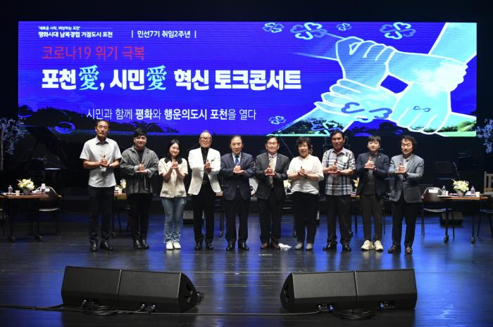 박윤국 포천시장은 3일 민선7기 취임 2주년을 맞아 포천 반월아트홀에서 ‘코로나19 위기극복, 포천애(愛) 시민애(愛) 혁신토크콘서트’를 개최했다.
