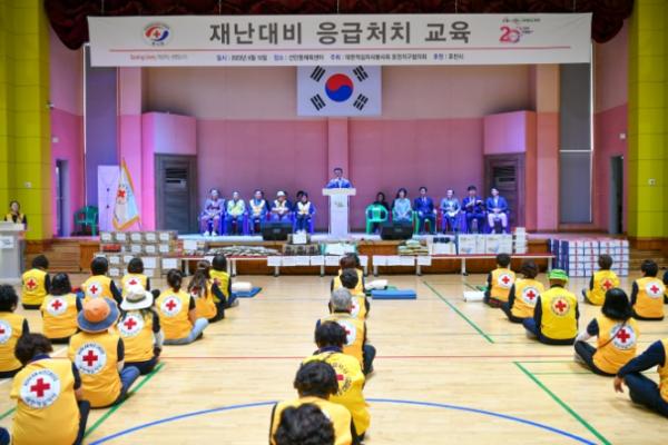 이날 재난대비 응급처치 교육은 체계적인 재해구호 전문인력 양성과 단체 회원 간 화합을 도모하고자 추진됐으며, 식전공연, 봉사원 서약 낭독, 대회사 및 격려사, 교육 순으로 성황리에 진행됐다.