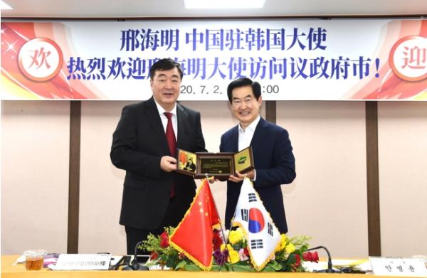 의정부시(시장 안병용)는 7월 2일 싱하이밍(邢海明) 제8대 주한 중국대사에게 감사의 마음을 담아 감사패를 전달했다. 주한 중국대사관은 올해 4월 중국 차하얼학회가 의정부시에 방역마스크(KN 95) 5만장을 지원하는 과정에서 적극적인 행정협조와 외교적 편의를 제공했다.