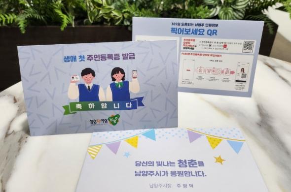 [한국뉴스타임=편집국] 남양주시는 생애 첫 주민등록증을 발급받는 청소년들을 위해 축하와 응원의 마음을 담은 축하 카드를 제작해 주민등록증과 함께 전달하고 있다고 13일 밝혔다.