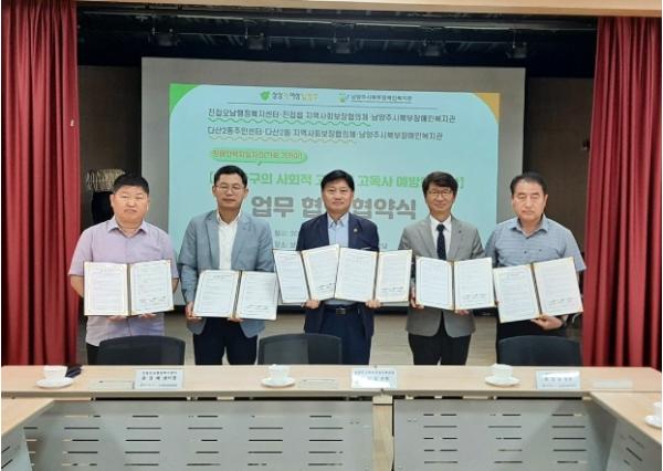 [한국뉴스타임=편집국] 남양주시는 13일 남양주시북부장애인복지관 4층 강당에서 'THE 가까이' 장애인일자리사업 관련 1인 가구 고독사 예방 및 사회적 고립 가구의 복지 안전망 구축을 위한 다자간 업무협약을 체결했다고 14일 밝혔다.