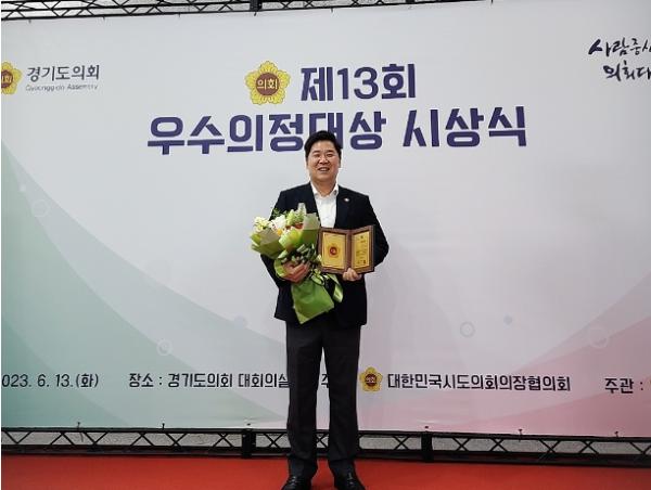 ‘우수의정 대상’은 전국 시ㆍ도의회의원의 의정활동을 평가해 능동적이고 선제적인 의정활동으로 지역사회 발전과 주민 삶의 질 향상에 기여한 지방의원에게 수여하는 상이다.