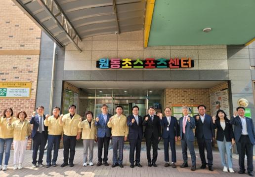 [한국뉴스타임=편집국] 국회 교육위원회 안민석 의원(더불어민주당, 오산)의 제안으로 이주호 부총리 겸 교육부 장관이 14일 경기 오산시 원동초를 찾아 유아 생존수영, 통기타 교육과 학교복합시설을 참관했다.
