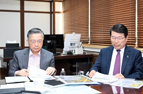 [한국뉴스타임=편집국] 구리시는 지난 14일 인근 신도시 개발에 따른 교통불편 해소대책과 사노동 구리테크노밸리 조성사업, 구리농수산물도매시장 이전사업 등의 원활한 추진을 위해 한국토지주택공사(LH) 이한준 사장을 만나 적극적인 지원과 협조를 약속받았다고 밝혔다.