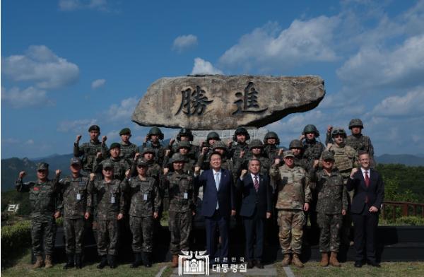 대통령은 마지막으로 행사에 참석한 군 주요직위자 및 한미 훈련 장병들과 기념촬영을 하고 악수로 격려하며 일정을 마무리했다.