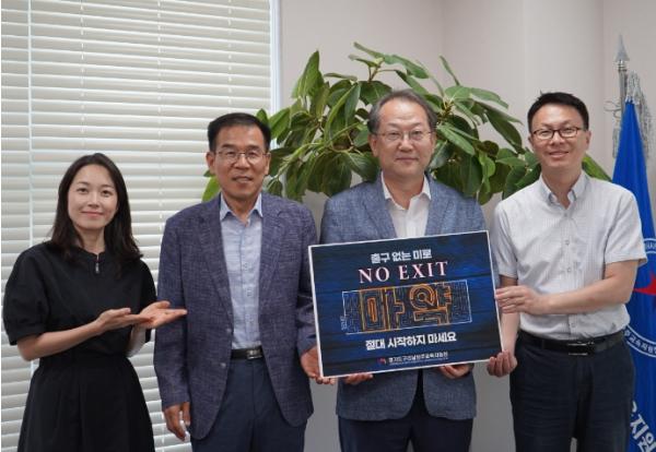 [한국뉴스타임=편집국] 경기도구리남양주교육지원청 최상익 교육장이 15일 마약범죄 예방 ‘노 엑시트(NO EXIT)’ 캠페인에 동참했다.