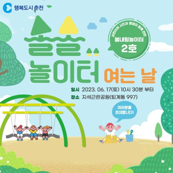 개장식에는 춘천시장을 비롯해 김진호 춘천시의회 의장, 국회의원, 시의원, 편해문 놀이터 디자이너, 춘천 시민 등이 참석할 예정이다.