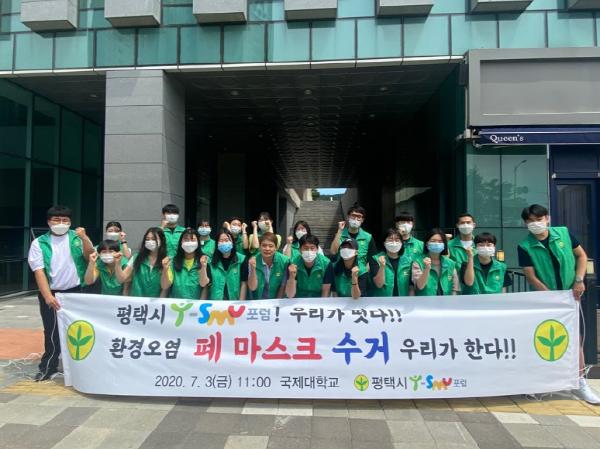 [KNT한국뉴스타임] 평택시 Y-SMU포럼은 7월 3일 평택시 장안동 일원에서 평택시새마을회 이사 안경한 교수와 국제대학교 학생으로 구성 된 평택시 Y-SMU포럼 회원 20여명이 폐마스크 수거로 생명살림운동을 전개하였다.