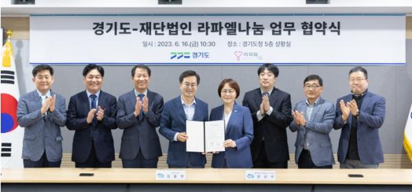 김동연 경기도지사와 안규리 재단법인 라파엘나눔 이사장은 16일 경기도청 상황실에서 이런 내용을 담은 ‘아카데미 사업 활성화를 위한 업무협약’을 체결했다.