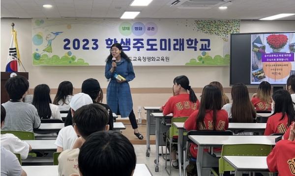 [한국뉴스타임=편집국] 경기도교육청평화교육원이 송우초등학교 6학년 학생 54명을 대상으로‘교육원협력형 학생주도미래학교’2기를 운영했다.