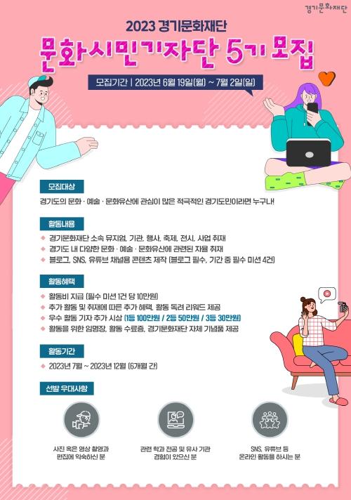 경기문화재단(대표이사 유인택)이 ‘문화시민기자단 5기’를 공개 모집한다.