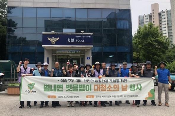 이날 활동에는 별내면사무소 직원과 별내면 자율방재단 단원 등 20여 명이 참여해 청학택지지구 내 총 80여 개소의 우수받이를 점검하며 주변 쓰레기를 청소하고, 슬러지 등의 퇴적물을 제거했다.