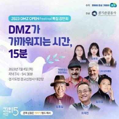 2023년 ‘디엠지 오픈 페스티벌(DMZ OPEN Festival)’은 경기도가 주최하고 경기관광공사가 주관하는 종합축제다. 경기도는 11월까지 DMZ 접경지에서 생태·평화·역사 가치를 알리는 공연, 전시, 학술, 스포츠 등 다양한 행사를 진행한다.