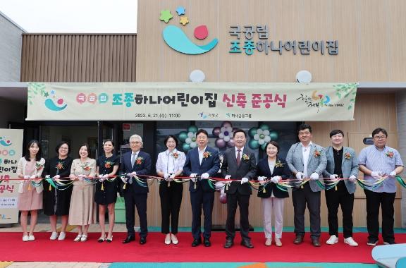 이날 준공식에서 서 군수는 기념사를 통해 “하나금융그룹과 손을 잡고 국공립 조종하나어린이집을 건립하게 된 것을 매우 기쁘게 생각한다”며 “앞으로도 민관 협력을 통한 예산절감은 물론 아이 키우기 좋은 도시를 만들어 나가는데 최선을 다하겠다”고 말했다.