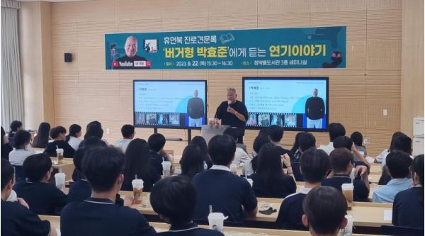 박효준 배우는 『버거형 박효준에게 듣는 연기 이야기』라는 주제로 배우로 성장하는 과정과 연기자가 되기 위해 갖춰야 할 역량 등에 대한 이야기를 들려주며, “꿈을 꾸고 있다는 것만으로 멋있는 일이다. 포기하지 않고 항상 겸손하고, 하고자 하는 분야에 대해 끈기 있게 나아간다면 뜻을 이룰 수 있을 것”이라고 학생들을 격려했다.