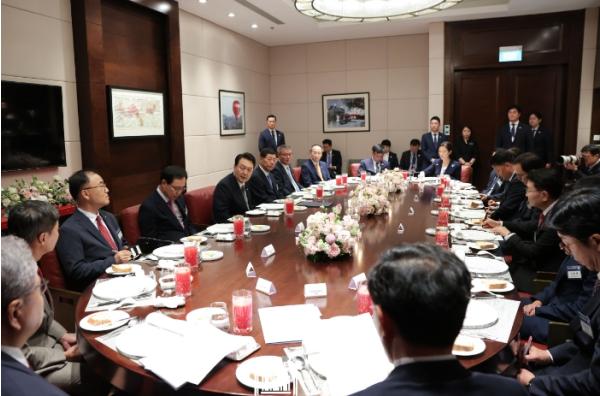 대통령은 베트남에서 신뢰받는 이미지를 구축해 온 기업인들의 헌신과 노고를 치하하는 한편, 기업들이 현지에서 맞닥뜨리고 있는 애로사항에 귀 기울였다. 녹록치 않은 경영 환경 가운데 우리 기업들이 홀로 고군분투하지 않도록 정부도 함께 뛰며 적극적으로 지원하겠다는 의지를 밝혔다.