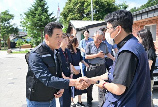 [한국뉴스타임=편집국] 백영현 포천시장은 지난 23일 선단동 천보마을에 방문해 포천푸드뱅크 관계자 및 이용자들을 격려했다.