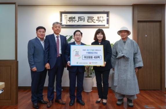 [한국뉴스타임=편집국] (주)바이오가닉은 지난 26일 남양주시 지역 내 어려운 이웃을 위해 300만 원 상당의 여성용품 408팩을 남양주시복지재단(대표이사 심우만)에 전달했다.