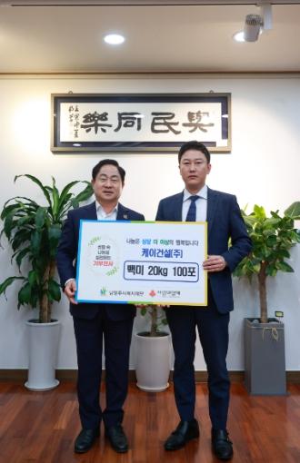 [한국뉴스타임=편집국] 남양주시 금곡동에 소재한 케이건설(주)은 지난 26일 지역 내 어려운 이웃을 위한 백미 20kg 100포를 남양주시복지재단에 전달했다.