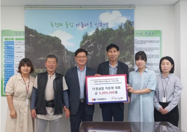 [한국뉴스타임=편집국] 신북면행정복지센터는 지난 27일 (주)다경실업에서 지역 내 취약계층에게 사용해달라며 이웃돕기 성금 500만 원을 기탁했다고 전했다.