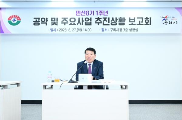 [한국뉴스타임=편집국] 구리시는 지난 27일 구리시청 3층 상황실에서 ‘민선8기 1주년 공약 및 주요사업 추진보고회’를 개최했다.