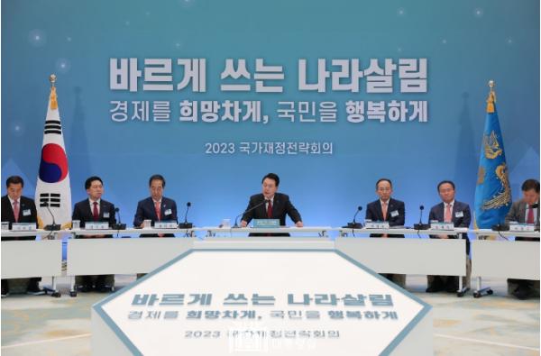 [한국뉴스타임=편집국] 윤석열 대통령은 6월 28일 청와대 영빈관에서 '2023년 국가재정전략회의'를 주재하고, ‘23~’27년 중기재정운용 및 ‘24년도 예산 편성 방향에 대해서 논의했다.
