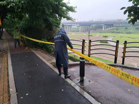 또한, 시는 재난상황실 CCTV 및 예·경보 시스템을 활용해 하천 수위를 모니터링하며 세월교, 하천 산책로 등을 통제하고, ‘외출 자제 및 위험 지역 접근 금지’를 안내하는 재난 문자 발송과 도로 전광판 40개소에 ‘낙뢰 및 국지성 호우에 따른 실내 이동’을 홍보하는 등 집중 호우에 적극 대응하고 있다.