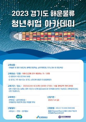 ‘해운물류 청년취업 아카데미’ 교육 대상자는 경기도 거주 청년(19세~34세) 또는 도 소재 대학 졸업(예정)자다.