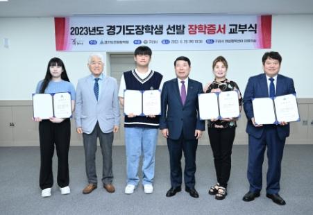 경기도 내 각 시·군별로 개최되는 이번 교부식에는 선발된 장학생들의 자긍심과 애향심을 고취하고자 백경현 구리시장, 신현태 경기도민회장학회 상임이사, 백현종 경기도의원, 이은주 경기도의원 등이 참석해 장학증서를 교부하고, 장학생들을 격려했다.