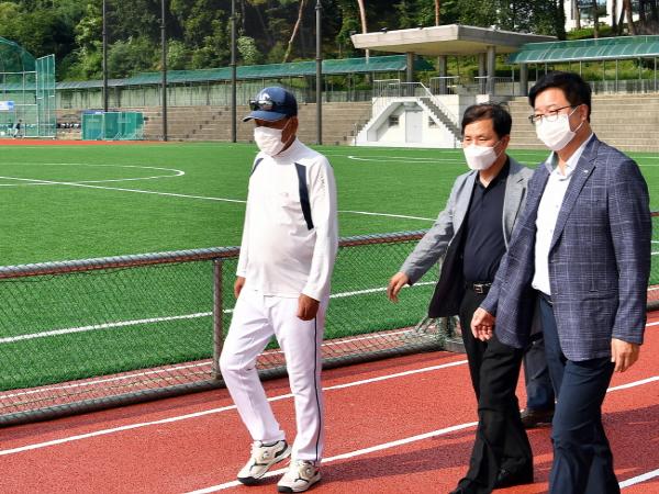 실내연습장도 설치돼 날씨에 상관없이 훈련을 할 수 있다. 비가 왔을 때 물이 잘 빠질 수 있도록 배수로(352m)를 정비했고, 육상트랙(5레인)을 설치했다. 새 운동장은 7월 1일 개장했다.
