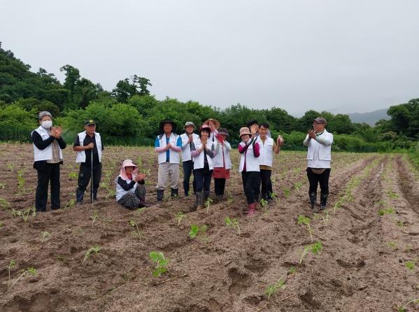 주민자치위원 20여 명은 신북면 가채리에 위치한 1,000여 평 규모의 텃밭에 들깨 모종 심기를 진행했다. 이날 심은 사랑의 들깨는 가을에 수확해 어려운 이웃에게 전달될 예정이다.