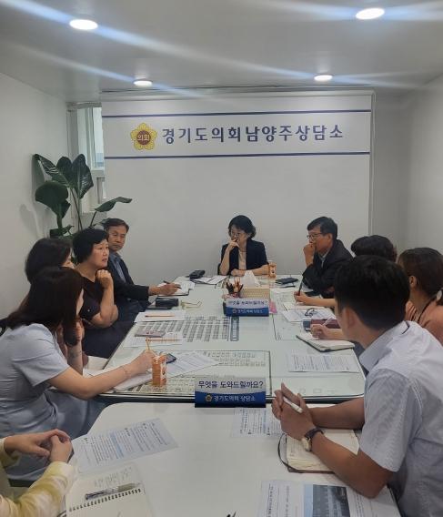 [한국뉴스타임=편집국] 경기도의회 교육행정위원회 김미리 위원장(더불어민주당, 남양주2)은 30일 오전 경기도의회 남양주상담소에서 ‘학교 옆 마약중독재활센터 불법 이전’ 관련 긴급 대책 회의를 개최했다. 이날 회의에는 구리남양주교육지원청, 남양주보건소, 판곡중·고등학교 교장 등 관계기관 담당자 7명 및 판곡중·고등학교 학부모 2명이 참석했다.