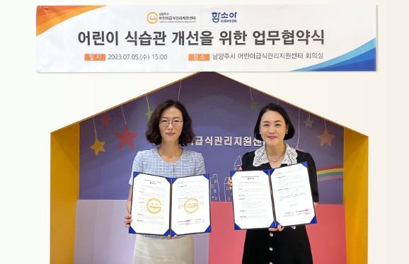이날 업무 협약식은 남양주시어린이급식관리지원센터 내에서 진행됐으며, 김미정 센터장과 함소아제약 장성희 개발본부 본부장 등 업무 관계자가 참석했다.