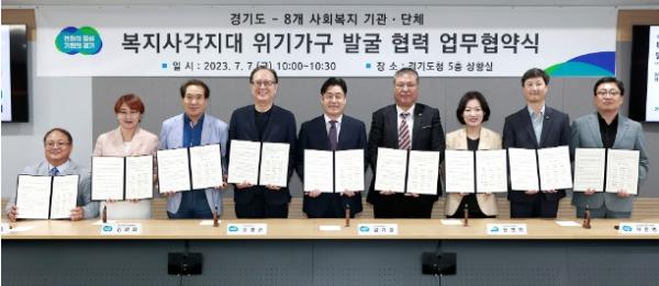 오병권 경기도 행정1부지사는 7일 도청에서 8개 사회복지 기관·단체와 이런 내용을 담은 복지 사각지대 위기가구 발굴 협력을 위한 업무협약을 체결했다.