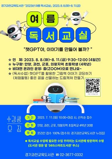 ‘여름 독서교실’은 8월 8일부터 8월 11일까지 안양·과천·군포·의왕지역 초등학교 4학년을 대상으로 진행된다.