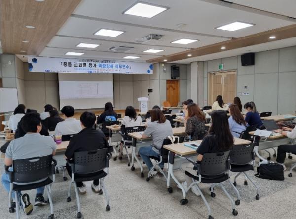 이번 연수는 중등 교과별 특성을 살린 수업과 함께하는 논술형 평가와 성장중심평가의 내실화를 위한 직무연수로 중등 교원의 교과별 학생평가 역량을 강화하고자 마련했다.