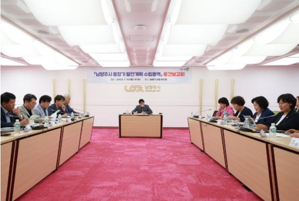 [한국뉴스타임=편집국] 남양주시는 10일 시청 여유당에서 시의 잠재력을 분석해 미래 발전 방향을 제시하기 위한 ‘남양주시 중장기 발전계획’ 중간보고회를 개최해 용역의 진행 상황을 공유하고, 향후 방향성을 논의했다.