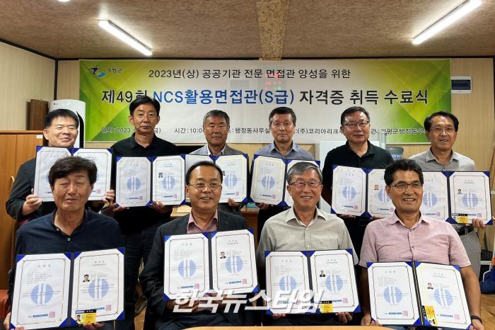 [한국뉴스타임=가평] 지난 7일 가평군행정동우회(이하, 행정동우회) 사무실에서는“제49회 NCS 활용면접관(S급) 자격증 취득 수료식”을 진행하였다 백병선 행정동우회 회장을 비롯한 10명을 행정동우회 회원들이 위 자격증을 취득하였다.