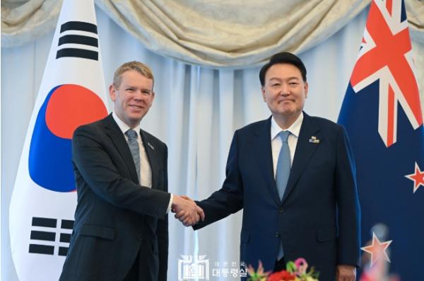 [한국뉴스타임=편집국] 윤석열 대통령은 북대서양조약기구(NATO) 정상회의 참석 계기에 7.11(화) 오후 크리스 힙킨스(Chris Hipkins) 뉴질랜드 총리와 정상회담을 개최했다.