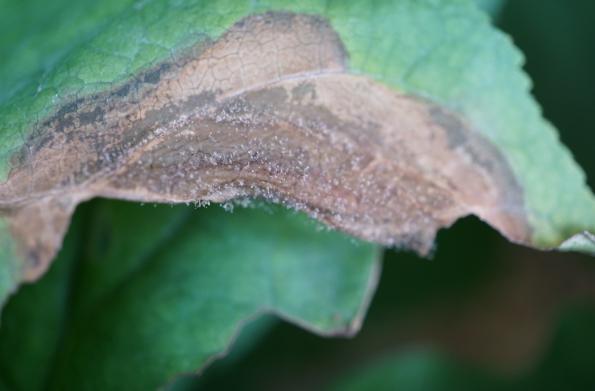 점무늬병은 장마철 고온다습한 조건에서 바람이나 빗방울에 의해 전파되는데 암갈색으로 잎이 말라 죽게 된다.