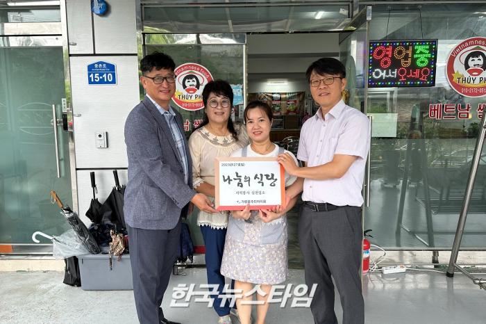 [한국뉴스타임=가평] 가평읍주민자치회(회장 김석구)는 13일 베트남쌀국수(대표 조민정)에서 나눔의 식당 제27호 현판식을 진행했다고 밝혔다.
