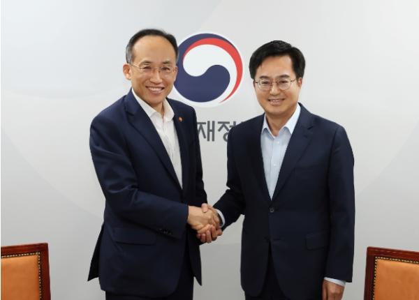김동연 지사는 이날 오후 정부서울청사를 방문해 추경호 부총리와 간담회를 갖고 ▲수도권광역급행철도(GTX) A노선 조기 개통 ▲옥정~포천 광역철도 건설 ▲저상버스 도입 보조사업 등 주요 사업에 대한 국비 지원 필요성을 설명했다.