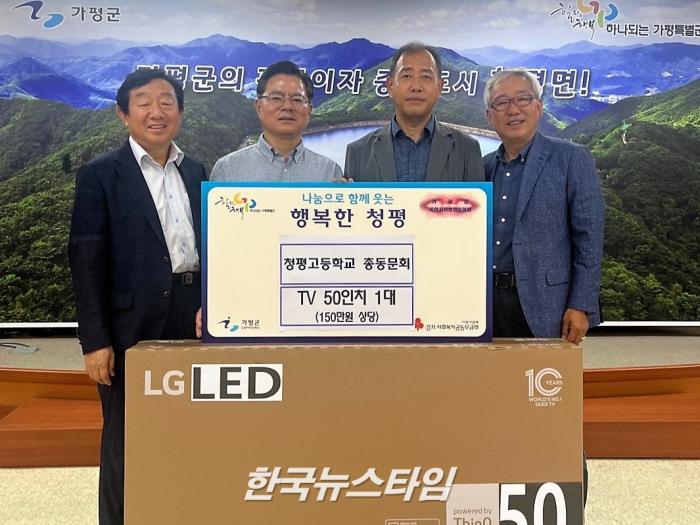 이번에 기증된 TV는 매년 청평고등학교 개교기념일(7월7일)을 기념해 7월 8일(토) 실시한 청평고등학교 총동문회 한마음체육대회에서 전임 회장단이 경품으로 기증한 TV를 조성필 전임회장이 당첨되어 지역사회 취약계층 등을 위해 사용하고 싶다는 뜻을 밝혀 기증하게 되었다.