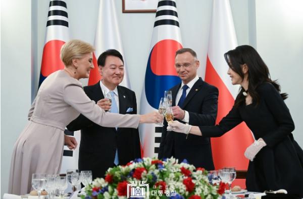 두다 대통령은 만찬사를 통해 양국 전략적 동반자 관계 수립 10주년을 맞이하여 윤 대통령 부부께서 폴란드를 공식 방문해준 것에 감사를 표하고, 오늘 정상회담을 통해 경제, 안보, 문화 등 다양한 분야의 협력 강화 방안에 대해 유익한 협의를 가진 것을 매우 기쁘게 생각한다고 했다. 아울러, 이번 윤 대통령의 방문을 계기로 양국이 전략적 동반자 관계를 한층 더 심화시켜 나가기를 바란다고 했다.